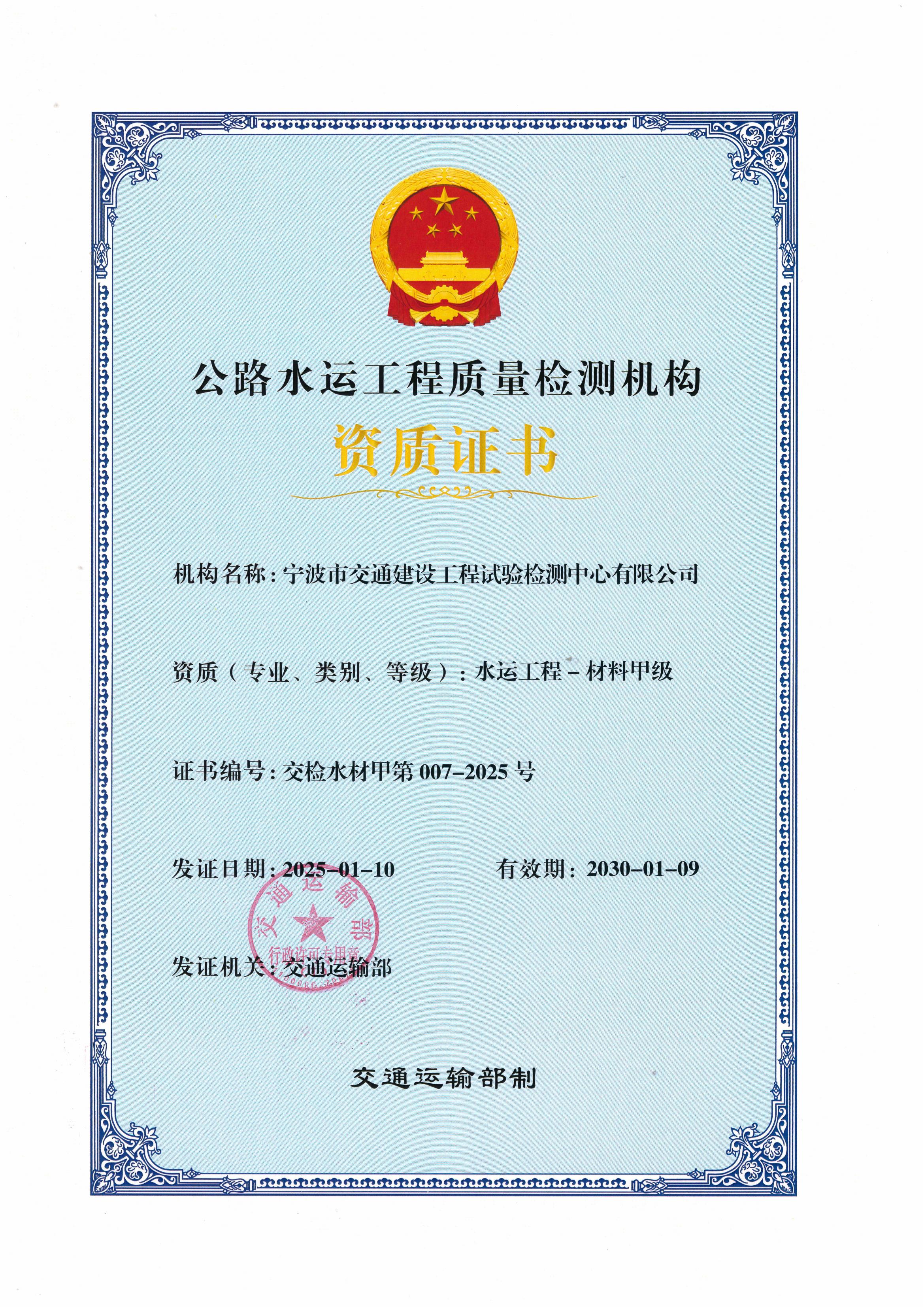 寧波市交通建設(shè)工程試驗檢測中心有限公司