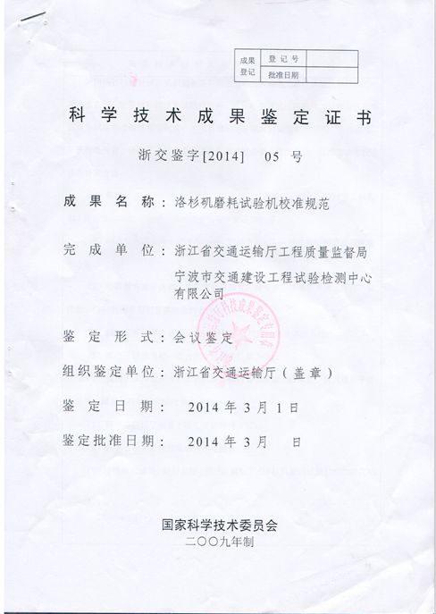 課題:洛杉磯磨耗試驗(yàn)檢校準(zhǔn)規(guī)范鑒定證書